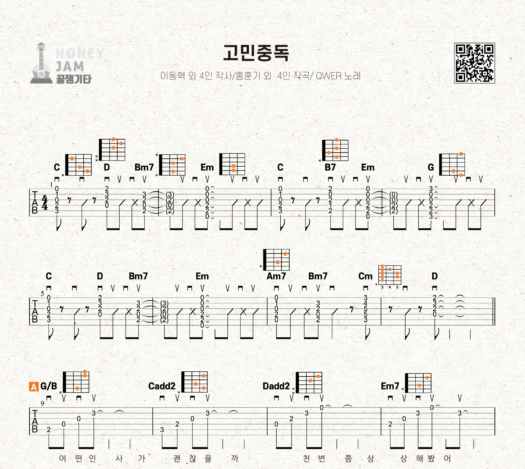 # 악보에 문제가 있는 경우 고객센터 혹은 카카오톡 플러스친구 꿀잼기타를 통해 문의주세요.