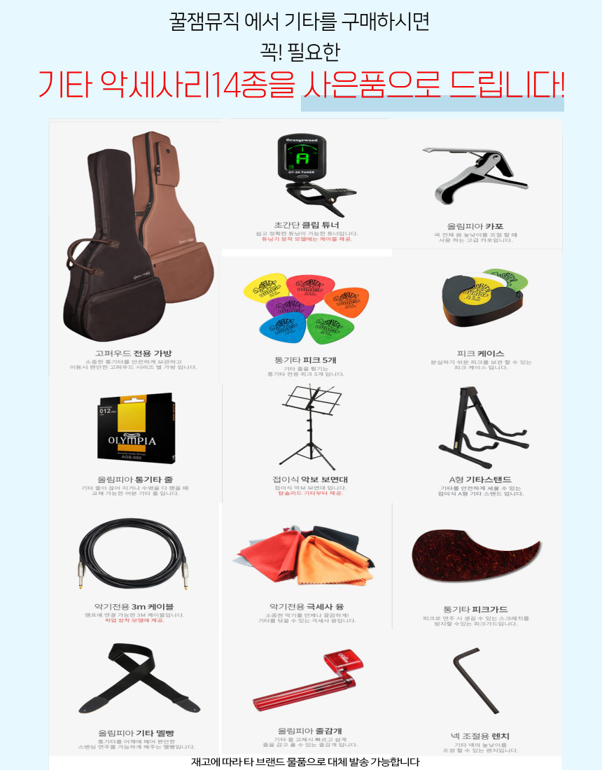 사은품: 고급 소프트 케이스, 튜너, 카포,스트링,