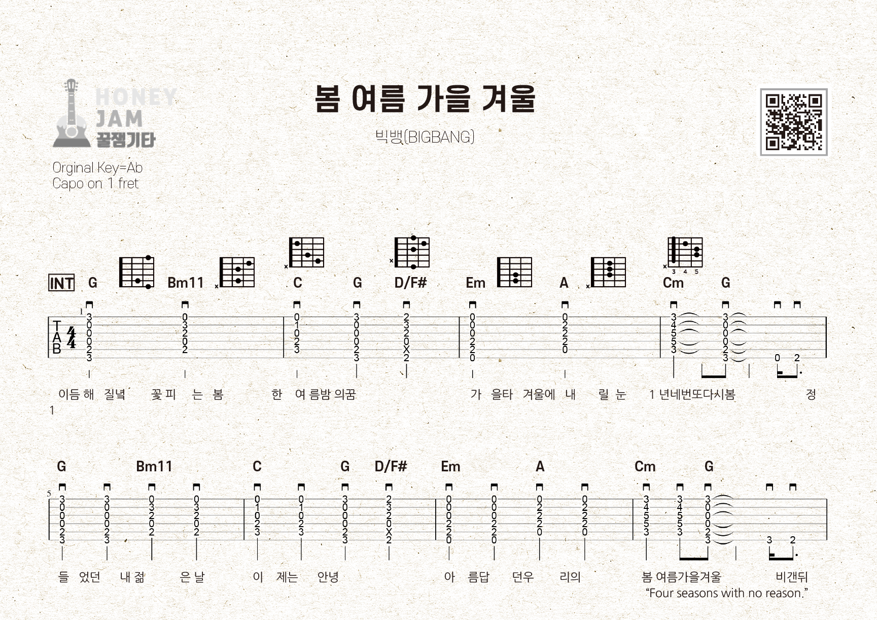 # 악보에 문제가 있는 경우 고객센터 혹은 카카오톡 플러스친구 꿀잼기타를 통해 문의주세요.